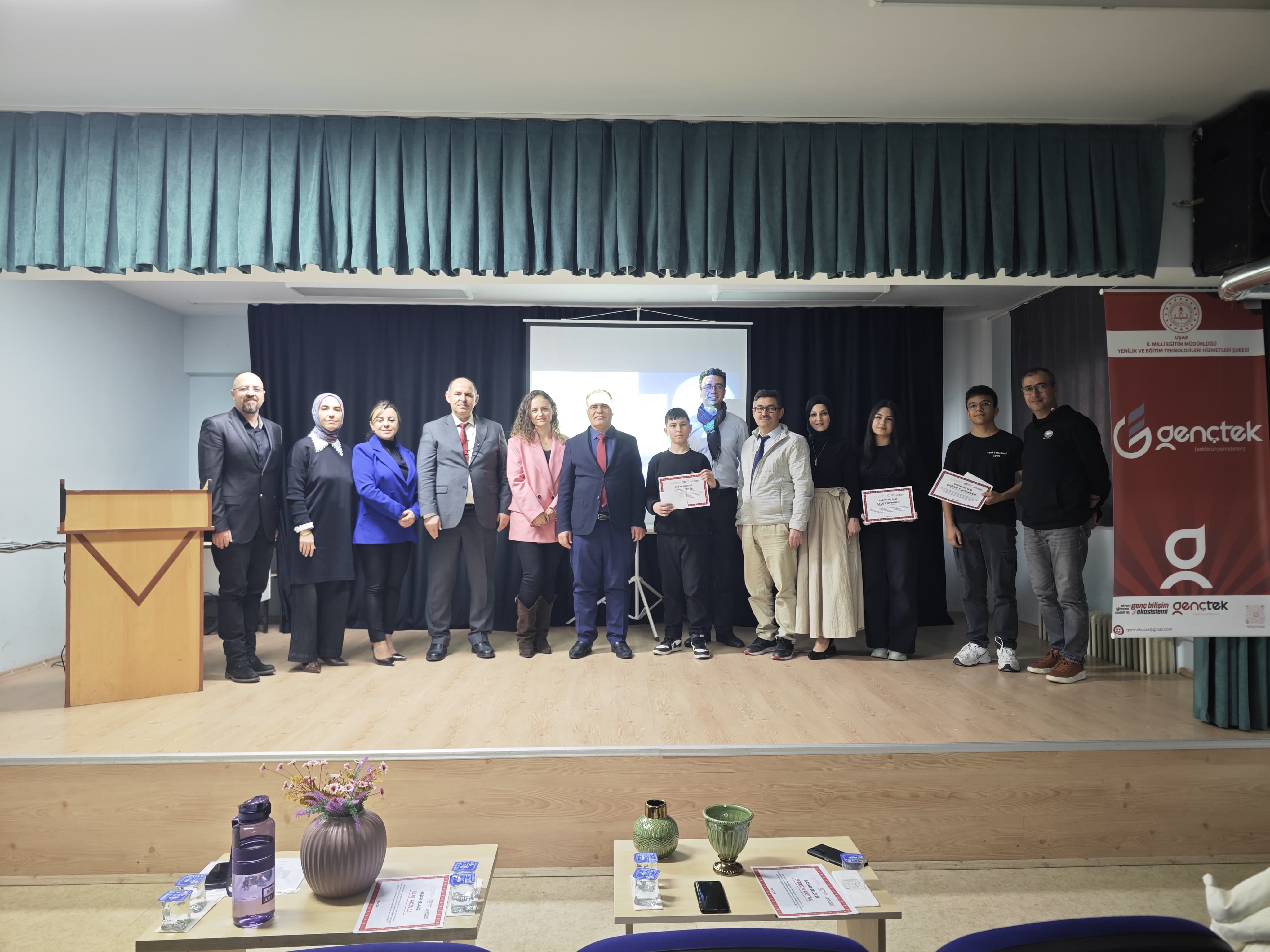 Genç Bilişim Ekosistemi ve Akran Öğrenme Modelinin geliştirilmesi hedefleri doğrultusunda Genel Müdürlüğümüz koordinasyonunda yürütülen GençTek çalışmaları kapsamında Uşak İl Millî Eğitim Müdürlüğü GençTek Uşak Koordinatörlüğünce hayata geçirilen “Uşak İçin Anlat: Yapay Zeka ile Hikâye Hazırlama Yarışması Ödül Töreni, 18 Şubat 2026 Çarşamba günü Uşak Sultan Halil Yiğit TMTAL Konferans Salonu’nda gerçekleştirildi. İlimizdeki 10 liseden çok sayıda öğrencinin eserleriyle katılım sağladığı yarışmada, ön değerlendirme süreci sonucunda 24 eser finale kalmış; alanında yetkin 13 kişilik jüri heyetinin detaylı değerlendirmesi neticesinde 3 eser dereceye girerek ödüllendirilmiştir.