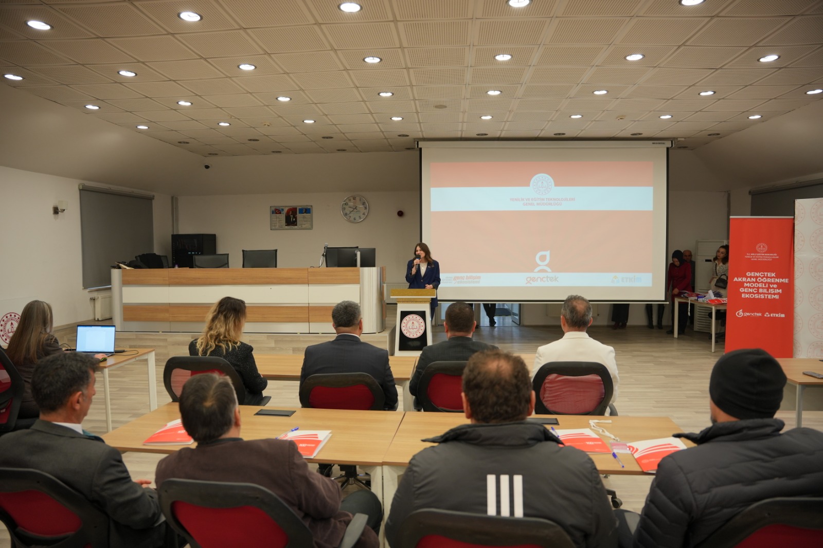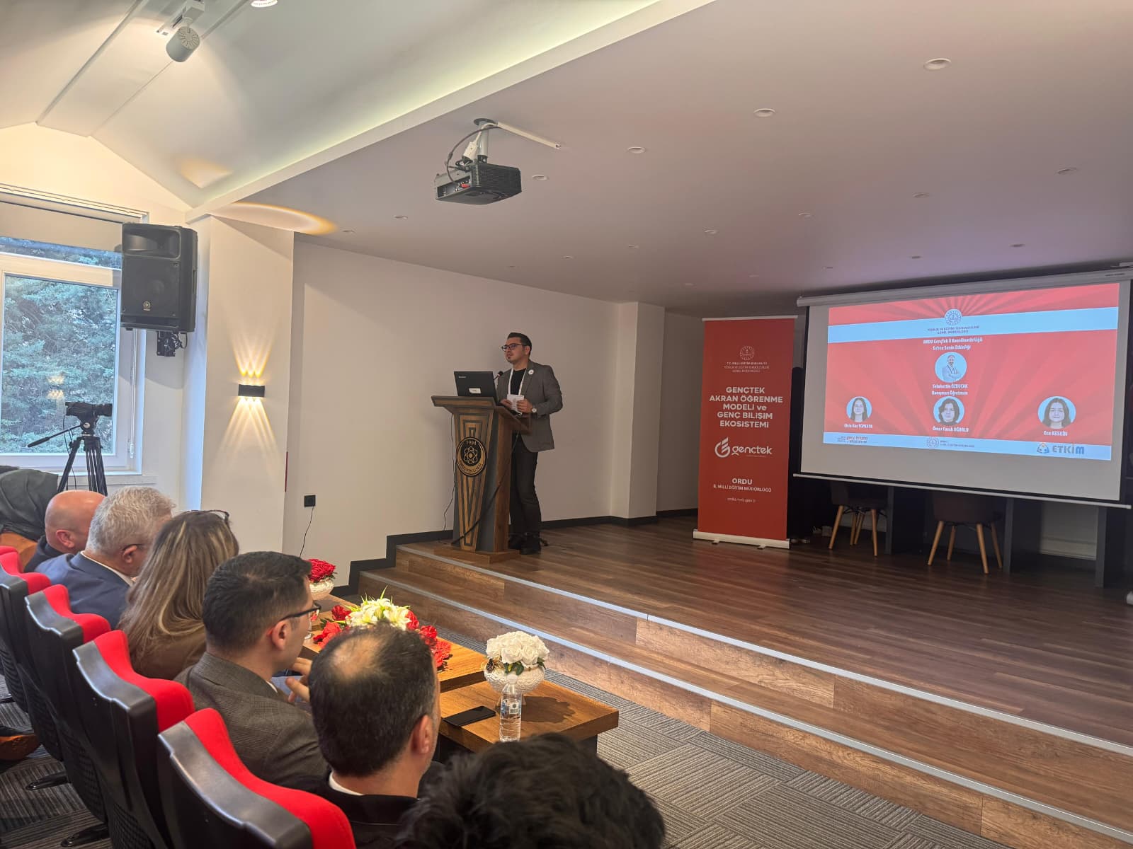 Genç Bilişim Ekosistemi ve Akran Öğrenme Modelinin geliştirilmesi hedefleri doğrultusunda Genel Müdürlüğümüz koordinasyonunda yürütülen GençTek çalışmaları kapsamında Ordu İl Millî Eğitim Müdürlüğü GençTek Koordinatörlüğü tarafından GençTek Tanıtım Toplantısı ve Sahne Senin Etkinliği, 18 Şubat 2026 Çarşamba günü Ordu Fen Lisesi Konferans Salonunda gerçekleştirildi. Program kapsamında GençTek İl Koordinatörü Arif Murat YAĞCI tarafından GençTek Bilişim Ekosistemi hakkında bilgilendirme sunumu gerçekleştirildi. Sunumda; GençTek’in akran öğrenme modeli, öğrenci merkezli yaklaşımı, bilişim alanında proje geliştirme süreçleri ve öğrencilerin teknoloji üretimine aktif katılımı konularında kapsamlı bilgiler paylaşıldı.Bilgilendirme bölümünün ardından GençTek’in temel etkinliklerinden biri olan