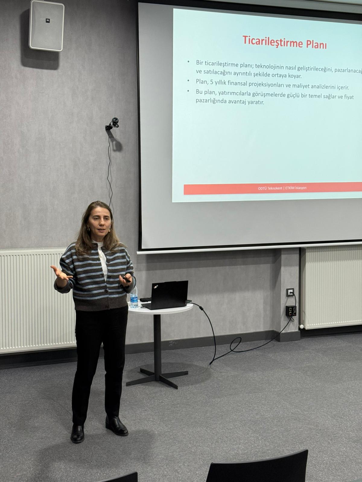 Millî Eğitim Bakanlığı ve ODTÜ TEKNOKENT iş birliğiyle yürütülen ETKİM İstasyon Hızlandırma Programı kapsamında 7 Ocak 2026 Çarşamba günü ETKİM Platin Salon'da Orta Doğu Teknik Üniversitesi Teknoloji Transfer Ofisi yöneticilerinden Sayın Aytülü SERT tarafından "İnovasyonu Pazara Taşımak: Ticarileştirme Süreci" eğitimi verildi. Aytülü SERT, girişimcilere ticarileştirme sürecinde yapılması gerekenleri ve bu süreçte yapılan hataları; fiyatlandırmanın önemini ve pazar doğrulamasını başarılı örnekler üzerinden anlatarak ekipleri bilgilendirdi.